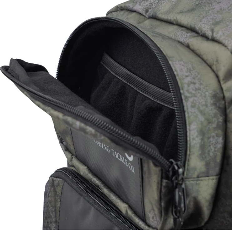 釣りやアウトドア、街中でも使えるバックパック。リサイクル420Dポリエステル製のこのバックパックは、軽量でありながら耐久性に優れています。豊富なポケットで荷物をたくさん収納できます。フロントの2つの小型ポケットと2つのサイドポケットは、素早く取り出したい道具や小物等の収納に最適です。中央の大きなポケットは大きめの荷物も入り、週末の旅行で衣類を入れるのに最適です。背面にはノートPCやタブレット入れることができるスリーブを装備しています。