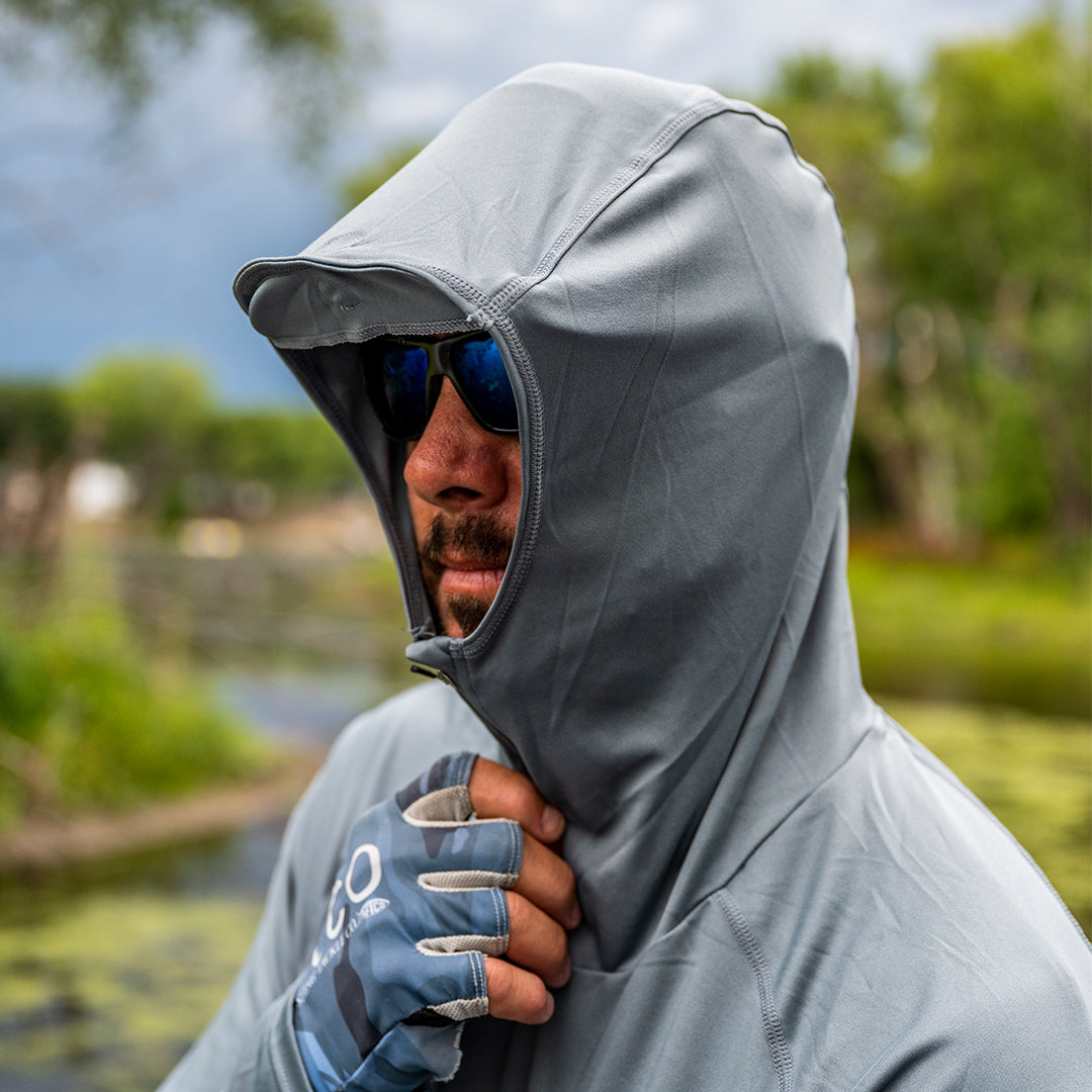 AFTCO のジェイソン クリスティ シグネチャー 日焼け止めパーカーをご紹介します。ジェイソンの直接のフィードバックは、すでに人気のあるサムライのフード付きパフォーマンス シャツを微調整するのに役立ちました。ジェイソンは、顔の日焼け防止効果を高め、まぶしさを防ぐために、サムライ シャツのフードを変更する追加の措置を講じました。AFTCO 製品開発チームは、クリスティ氏と協力して彼の独自の修正を適用し、フード サイズを大きくし、ネック クロージャー システムと統合されたハット バイザー スリーブを備えた高性能日焼け止めシャツを製造しました。ジェイソンがリクエストしたこれらの特定の機能は、顔、首などの日焼け止めの表面積を改善します。