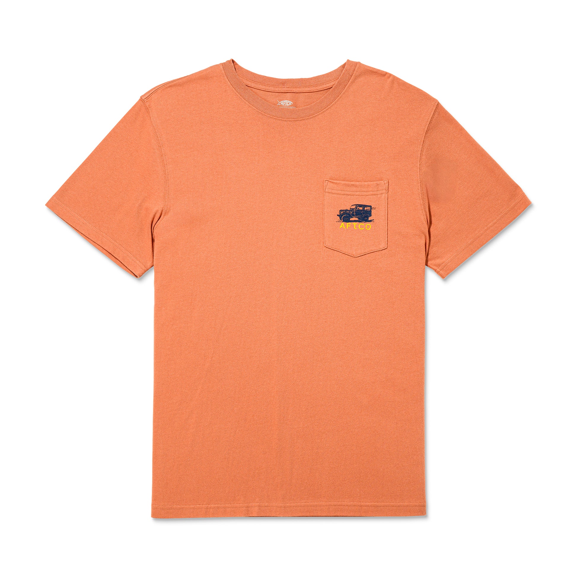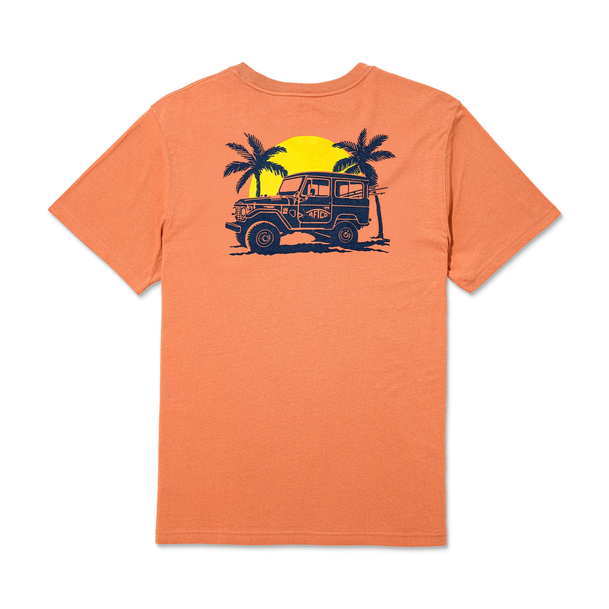 ロッドをセットして出発準備が整ったAFTCOのジープがプリントされていて、釣り好きにとっての楽園のような雰囲気を表現しています。