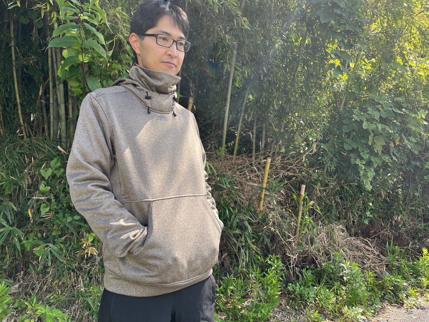 日本人スタッフ(身長174cm、体重65kg)の着用イメージです。普段は日本サイズのLサイズを着用することが多いですが、本製品(Reaper Sweatshit MF4172)では、Mサイズが丁度良く感じます。