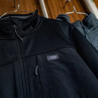 Ripcord Softshell Jacketは、3 層のリサイクル ポリエステル ニット ソフトシェルを使用しています。防風性と防水性を備えています。釣り以外でもこのソフトシェル ジャケットは、オフィス、球技、空港などでも、万能ジャケットとしても機能します。