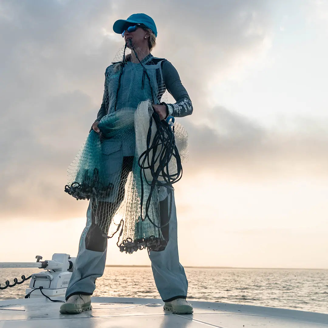 Hydronaut Bibは、快適性を高めるために一日の釣行終わりに背中の痛みを軽減する幅広のショルダーストラップを採用し、漏れを防ぐためにテープ処理された縫い目、釣り中の摩耗を防ぐために関節部分に補強された膝と背面パネルが備わっています。