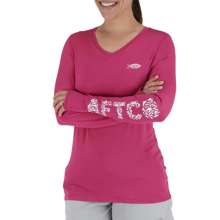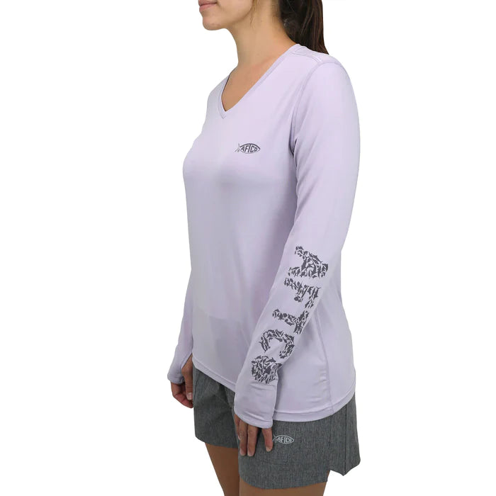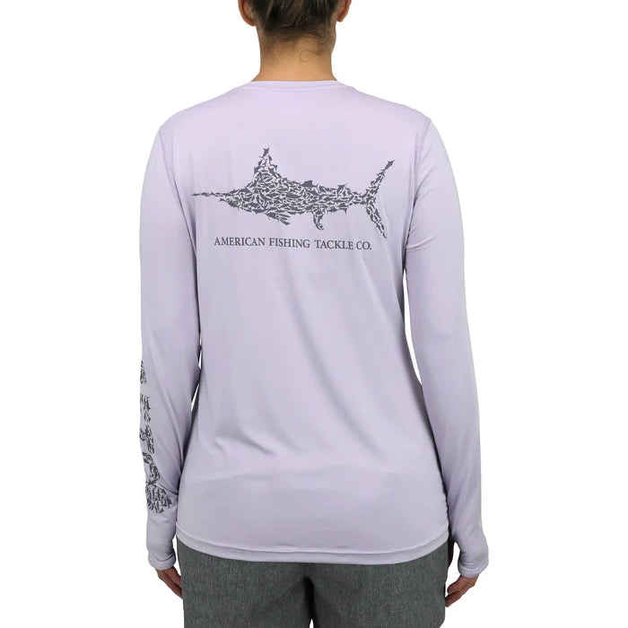 ポリエステル 92%、エラスタン 8% で作られ、防臭、UPF 40 の日焼け止め、速乾性、抗菌加工の機能が施されています。このシャツはボート上での使用のためにデザインされており、釣りや日焼けからの日焼け止めを念頭に置いています。オフショアゲームをする女性に向けたロングTシャツとなっております。